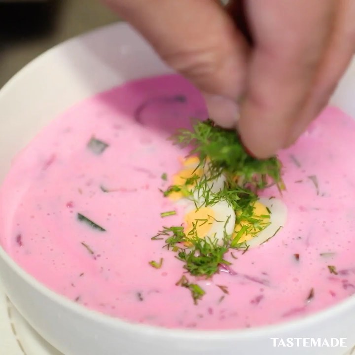 【お家から世界一周✈️】ピンク色のボルシチ!?どんな味?inリトアニア🇱🇹⠀