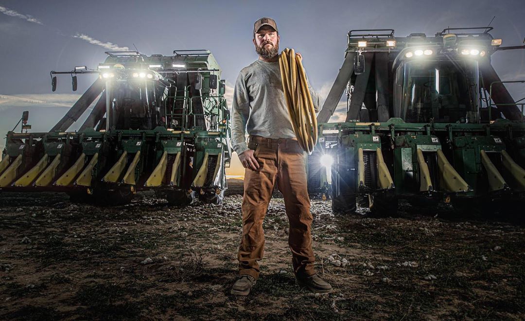 I captured Jay at dusk in front of his cotton pickers, just as his team was wrapping up the day’s harvest. Jay is committed to sustainable cotton farming and to revitalizing American clothing manufacturing.