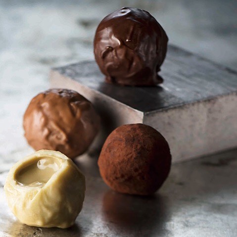 『ヴェストリ』の、「ペルレ・ディ・トスカーナ」。ホワイトにはピスタチオ、ミルクにはヘーゼルナッツ、ダークにはアーモンドを組み合わせた口どけに魅了されるトリュフ。