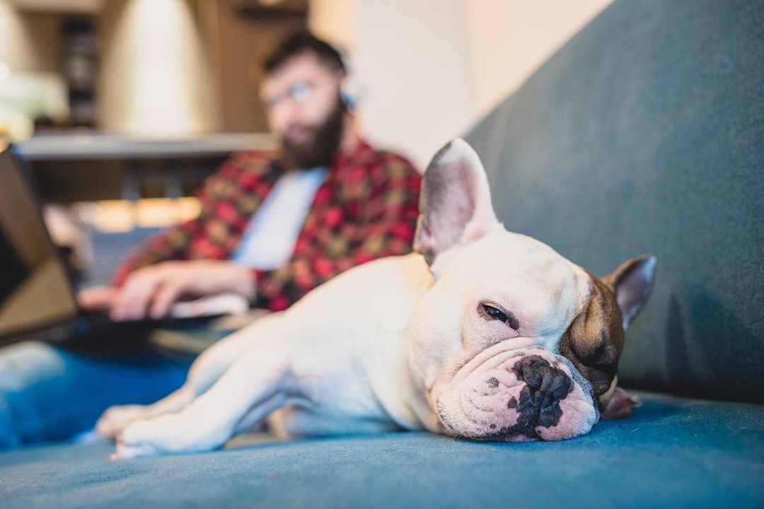 Human, can you please take this conference call in the other room? I am trying to sleep. 🐶💤 •
