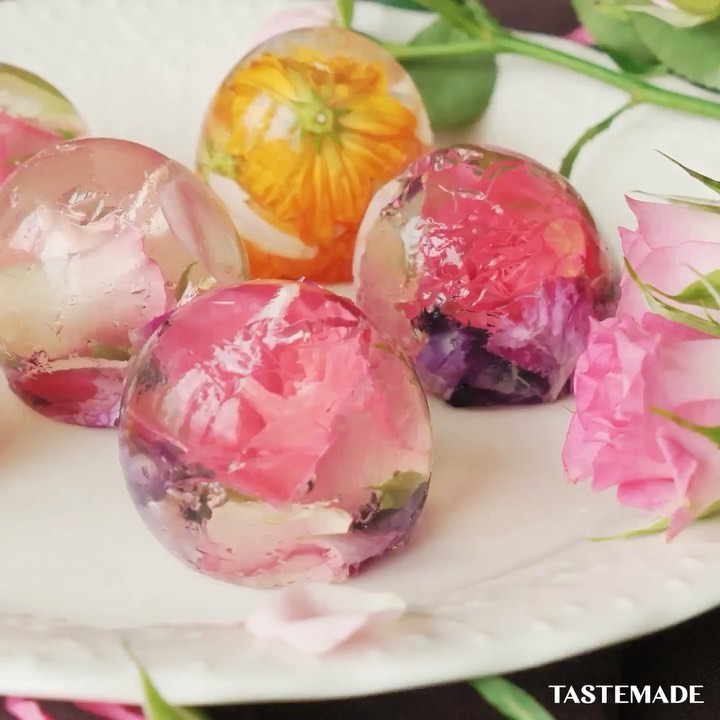 お花をゼリーに閉じ込めた、おうちパーティーにぴったりなデザートです♪⠀