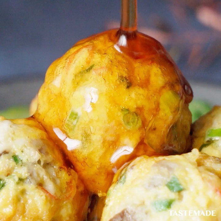 【たこ焼き器で変わり種👅】まん丸カニ玉あんかけ⁠⠀