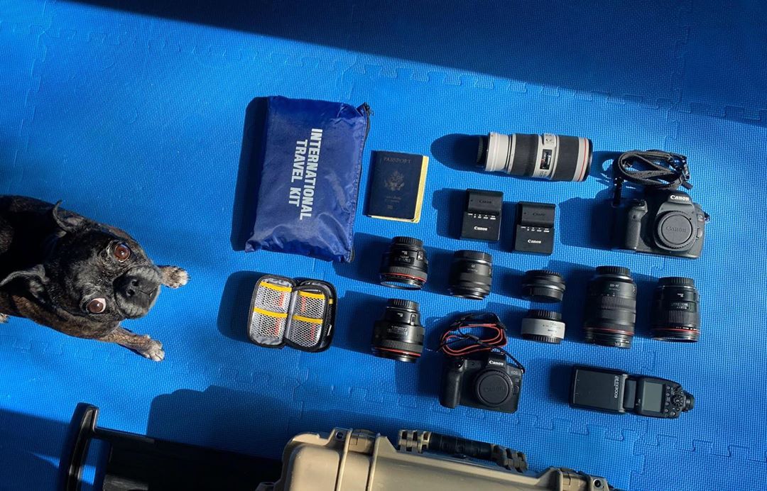 Find out what’s in #CanonExplorerOfLight @stephsinclairpix’s gear bag! | “Stella, one of my family’s three dogs, shoots me a worrying look as I lay my core camera equipment out for a photograph. She is unusually perceptive and somehow knows my packing up normally means I’ll soon be leaving home on another trip. I am proud to bring the Canon gear shown here on all of my international assignments. Because of its exceptional low light capabilities and silent shutter, I currently use the EOS R for much of my reportage. However, I still adore the EOS 5DS R and the prime lenses you see here for shoots that require faster movement, such as sports, fashion, and documentary situations. I have also found the generous file sizes from the 5DS R to be extremely helpful when making large prints for exhibitions. Not easily seen here are the B&W UV filters on all the lenses and the Sandisk memory cards. And the blue bag is a medical kit sent to me by National Geographic, since I commonly travel to places where quality medicine is limited. To keep everything secure while traveling, I use this lockable hard shell Pelican case.