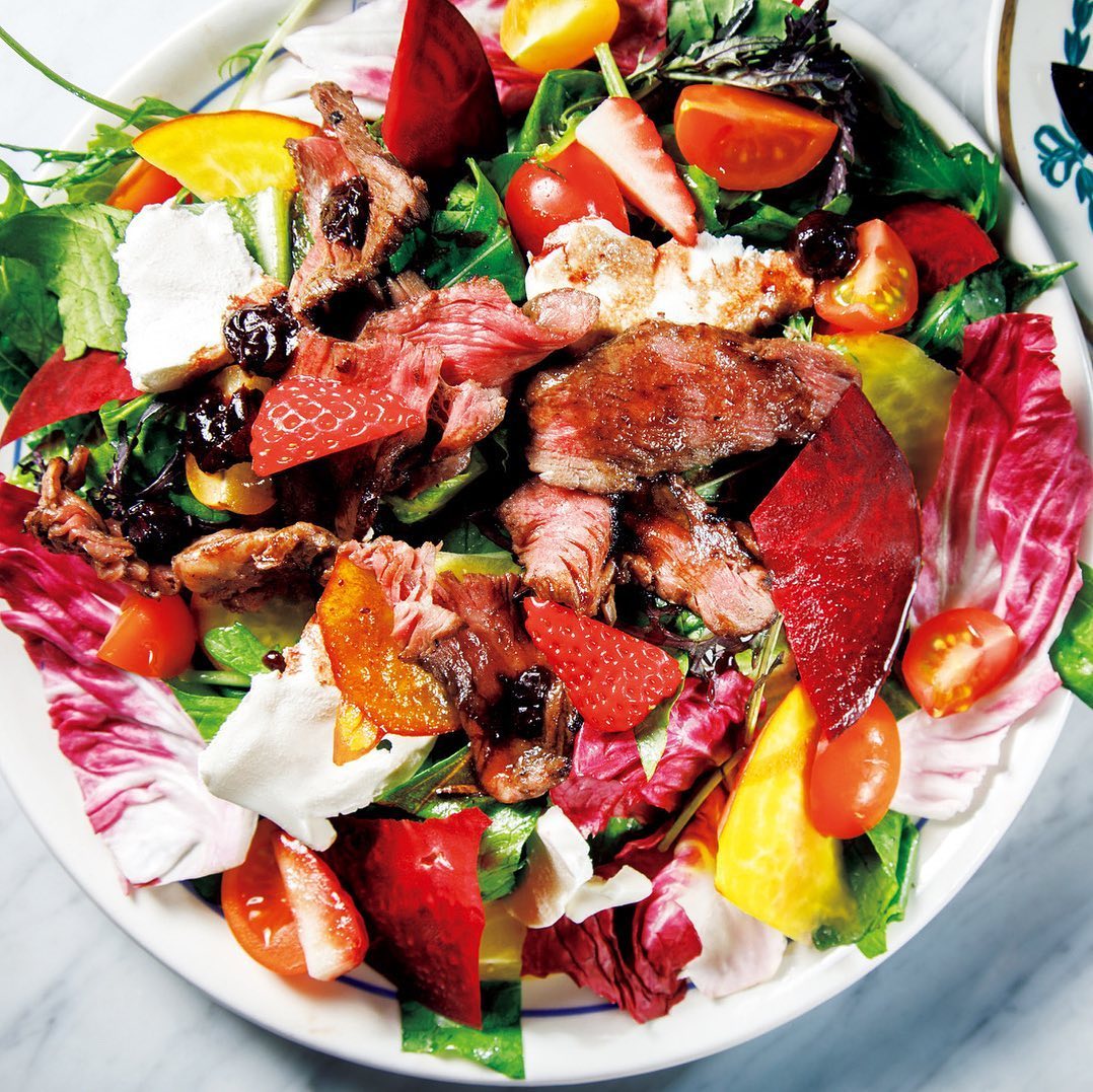 ①「自家製ローストビーフ&ベリー」。ストロベリーやビーツ、クリームチーズの爽やかな味わいが絶妙⠀