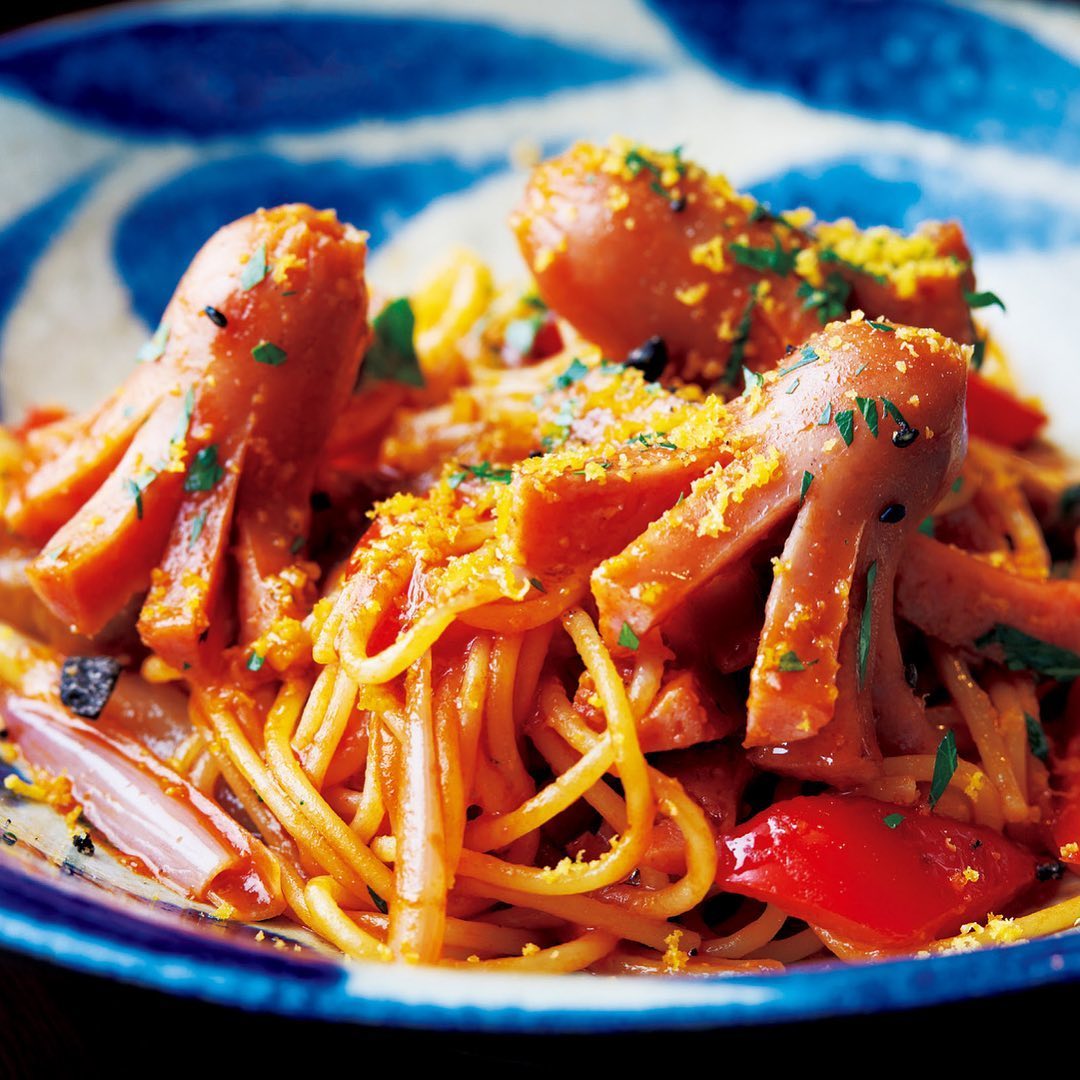 こちらはナポリタンだがエシャロットソースを加え、複雑な味わいに。タコさんウインナーで可愛さを担保