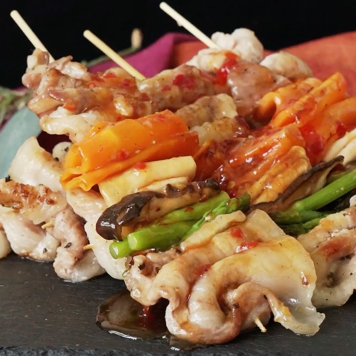 【完全にヘルシー】豚肉と野菜のじゃばら串⠀