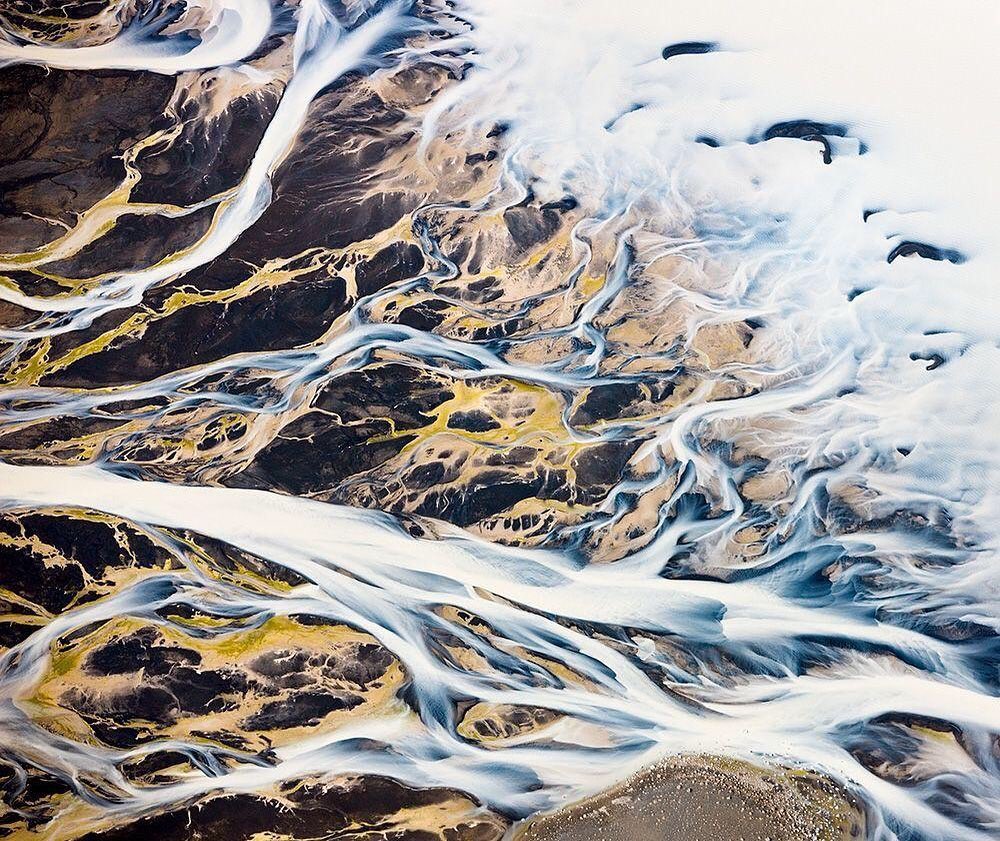 Photo by #CanonExplorerOfLight @stephenjohnsonphoto | “I love to fly, and on my 2009 visit to Iceland, I decided to rent a plane and get a look around from the air before an upcoming workshop. The results were among the most spectacular visual experiences of my life. The glacial melt on high ground formed sinuous channels of silt-filled melt streaming down the mountainside. We circled the formation five times because the view was so spectacular and abstract.” .