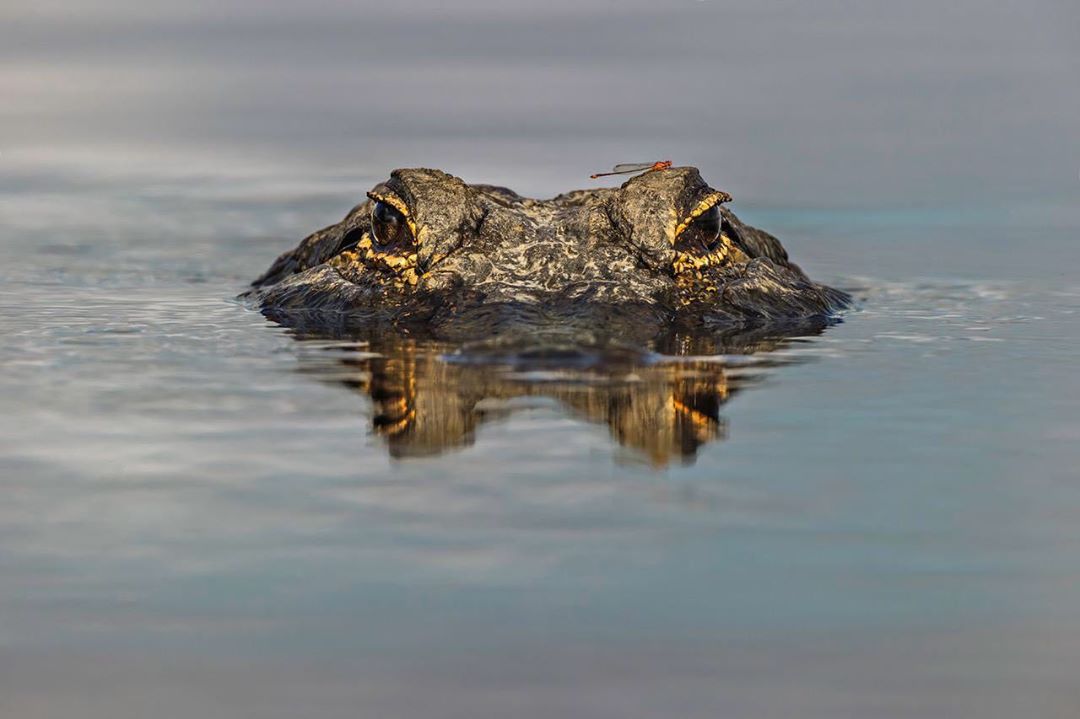 #BehindTheShot with #CanonExplorerOfLight @adam_jones_photo “This American alligator image was a shot I envisioned and tried to capture during many photo safaris in Florida. The situation just never really materialized as envisioned, until last winter with my workshop group at Myakka River State Park, near Sarasota. This image was captured at 1200mm, from a safe distance from this primitive reptile. Lying flat on my belly, my tripod was positioned at ground level right at the edge of the water for a dramatic low angle view. Alligators are quite common in Florida, but it’s not every day they line up head on looking right down the lens barrel. Then a red dragonfly landed on his head, to literally cap off this fun shot. It took a couple attempts to get the alignment perfect, the alligator was watching a fisherman standing close to my camera position. I know this specimen was over 10ft, because we got a great look at him as he lunged out of the water and charged the fisherman and gulped down his fish.