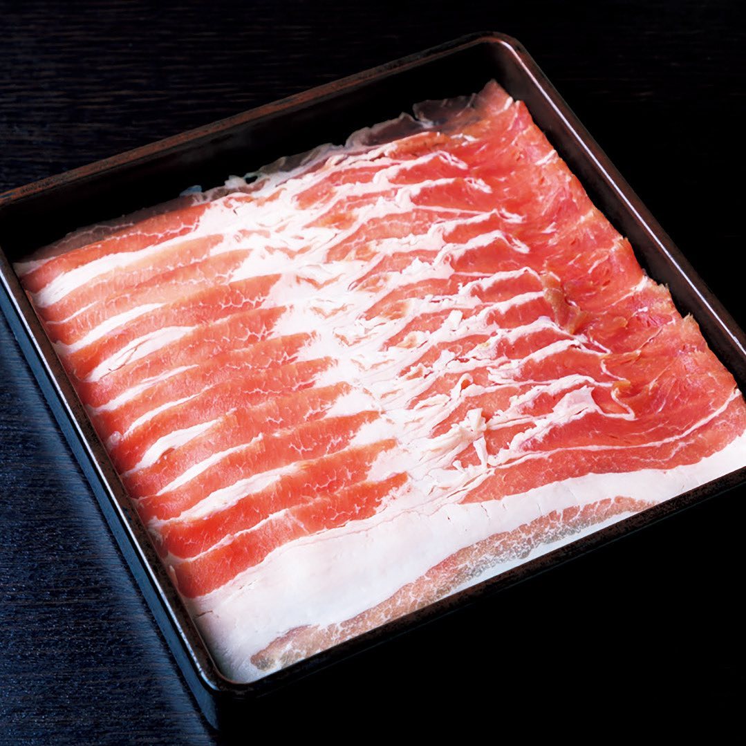 使う部位は、薄切りのバラ肉。特製の出汁に山盛りの深谷ねぎをすべて投入し、黒豚の両面色が変わったら、ちょっと多いかな、と思うくらいの深谷ねぎを巻いて一気に頬張る。