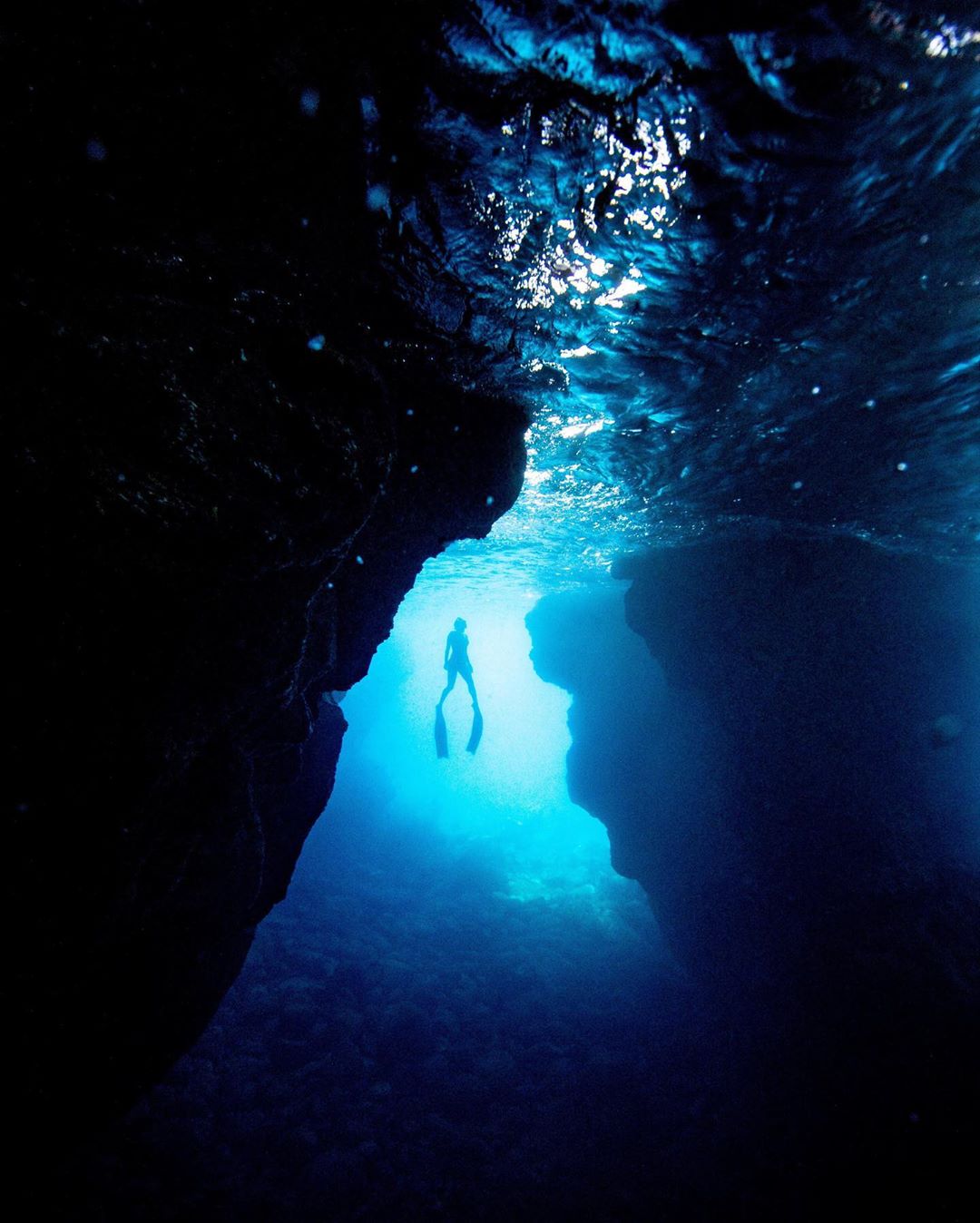 Photo by #CanonExplorerOfLight @zaknoyle “Deep in a cave in Hawaii, swimming through crystal blue waters @vanessafosterhawaii ascends for a breath of air.”