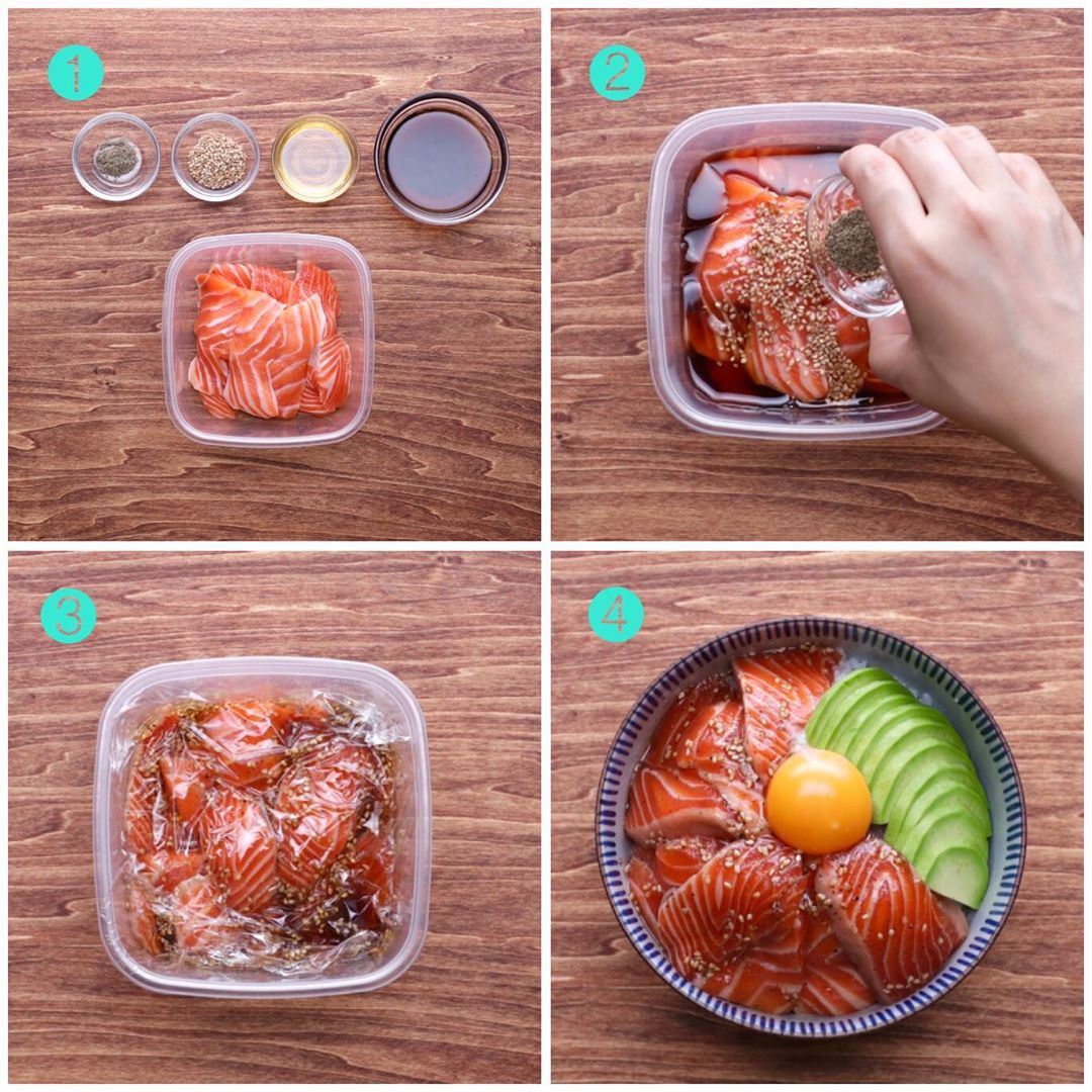 めんつゆ万能すぎ💕 「サーモンのペッパー漬け丼」の作り方🐟