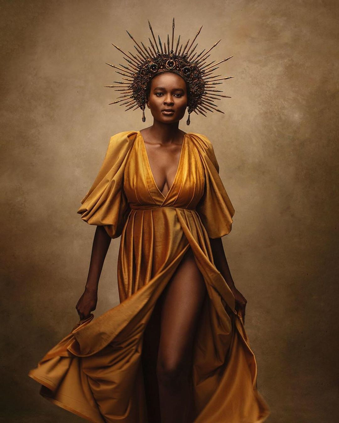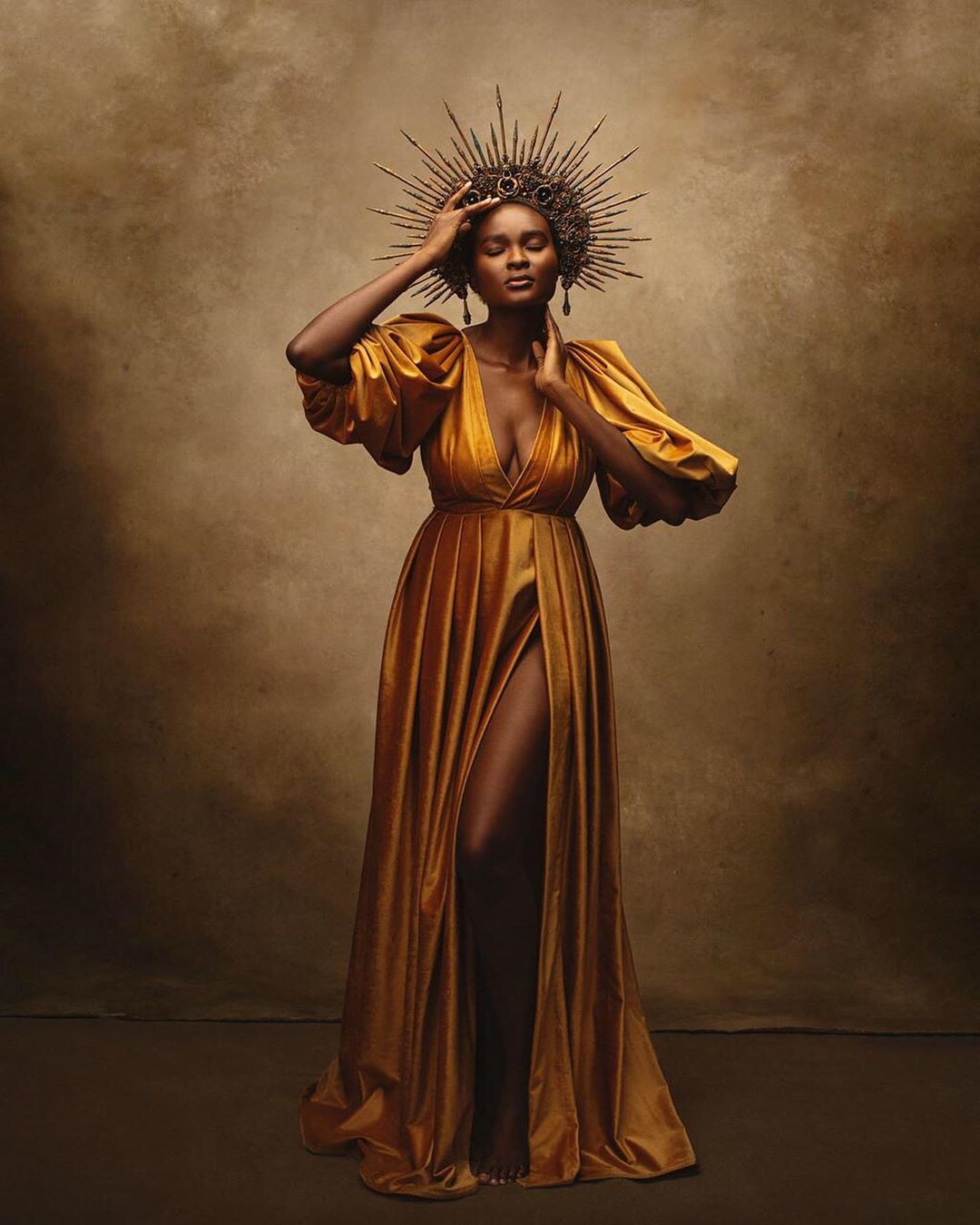 “The days we are living in are revolutionary. 2020 woke us up for so many things that we were sleeping on and not paying attention to. Health, politics, racism, equality, all the main issues we avoided in our conversations for so long, for politeness or just to be comfortable. Still, we can find love in the human race. We can find kindness, power, unity, compassion, strength, intelligence and beauty! When Tee tried this magnificent gold dress on from @reclamationdesigncompany we all knew in the studio that this was the perfect moment to photograph her. We all knew she was the perfect person for this majestic dress. So @suebrycephotographer and I took turns photographing Tee and her iconic looks, to remember these moments in history, to elevate and celebrate how beautiful and powerful the black skin color is. Thank you Tee for your friendship and love, as always, what an enormous pleasure to photograph you!” #MyCanonStory