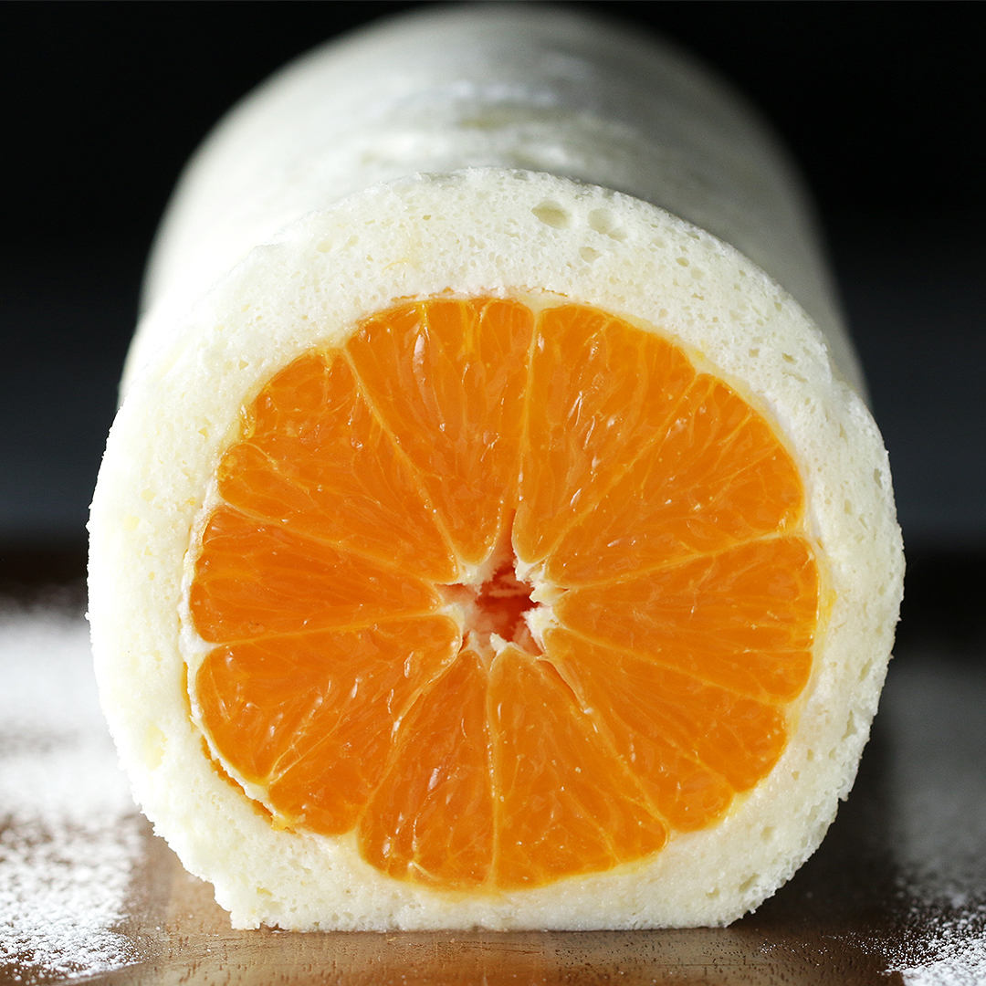 これぞ断面美。まるごとオレンジのホワイトロールケーキ🍊