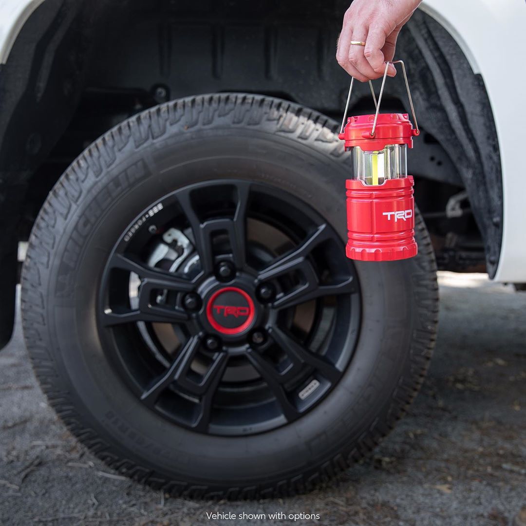 Toyota Outfitters is there to help you light up any campsite! And with a built-in speaker, you can bring the party anywhere with this pop-up lantern. #Tundra #TRD #LetsGoPlaces