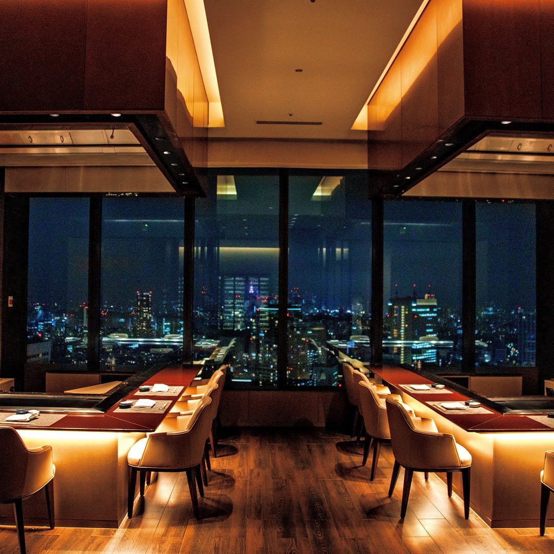 東京にホテルの鉄板焼きは数あれど、ここまでダイナミックな夜景を望む席はそうそうない。