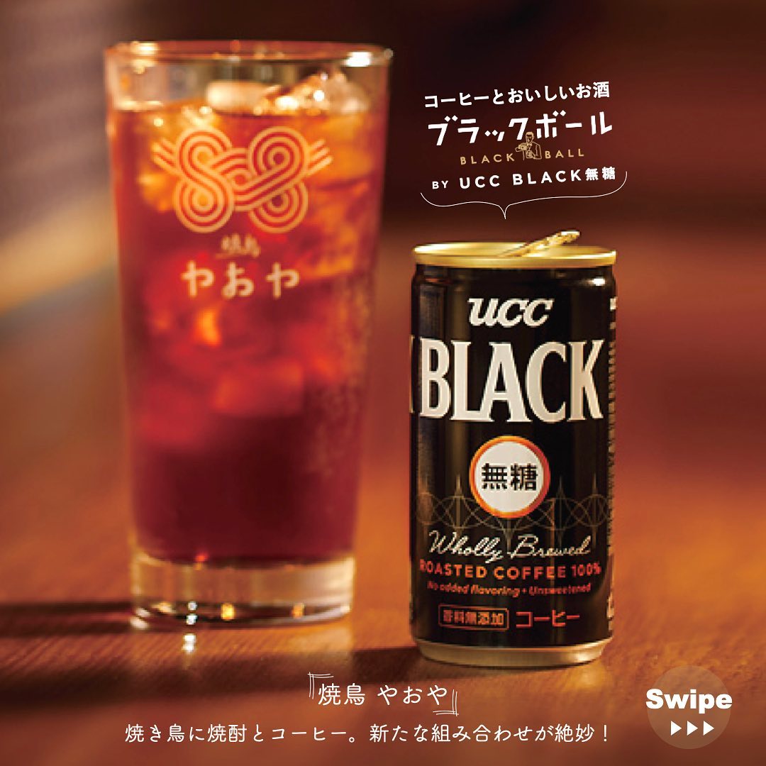 お酒も豊富に取りそろえており、期間限定で新たに登場した「UCC BLACK無糖」を使った「酒粕焼酎ブラックボール」と「泡盛ブラックボール」が話題になっている。