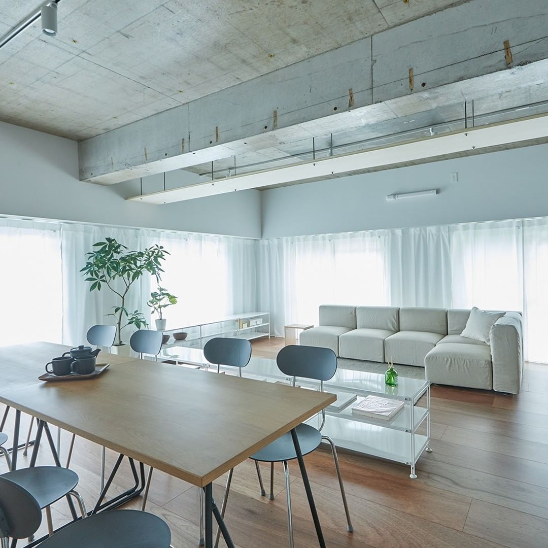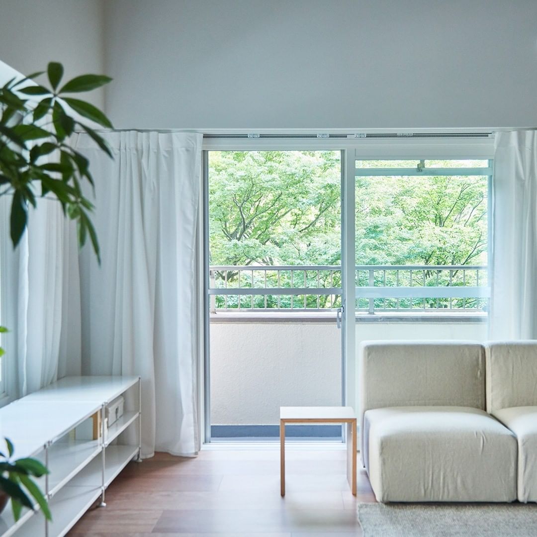 東と南にバルコニー、北側にも窓があるため三面から光が入り、風も気持ちよく通る2階の角部屋を「MUJIINFILL 0」でリノベーションを行いました。