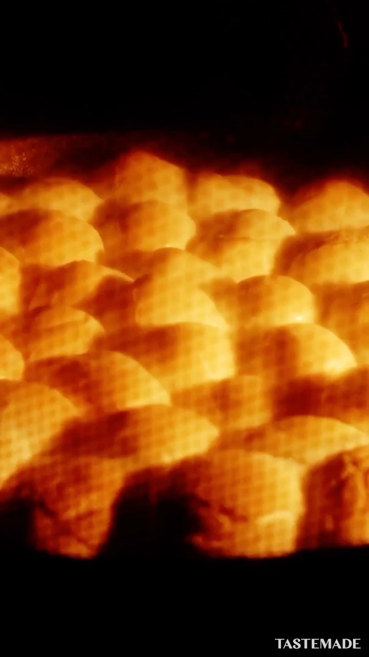 オーブンの中で変化する食べ物にフォーカス⚡️👀✨