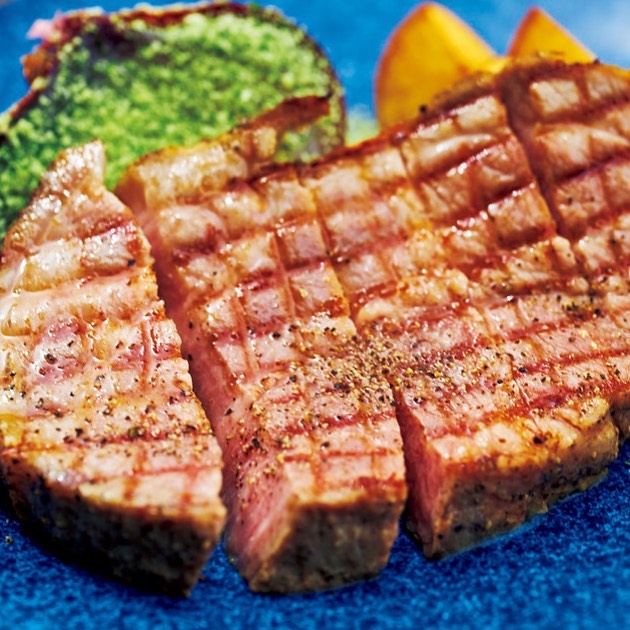 写真①素材の味を生かすためシンプルに塩のみで味付けされる「群馬県優味豚肩ロースグリル」