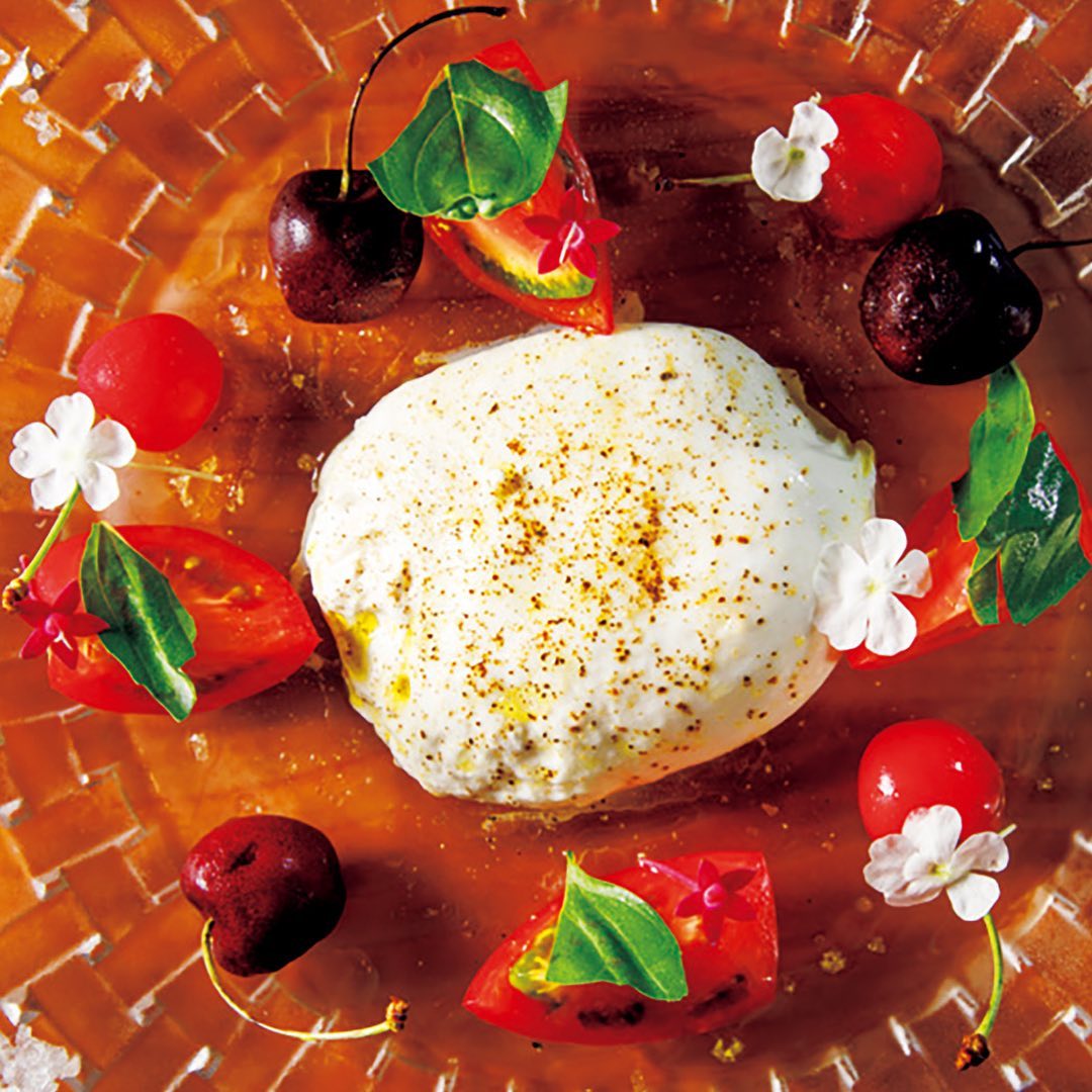③「ブッラータチーズとフルーツトマト 季節のフルーツのカプレーゼ」¥1,780~。