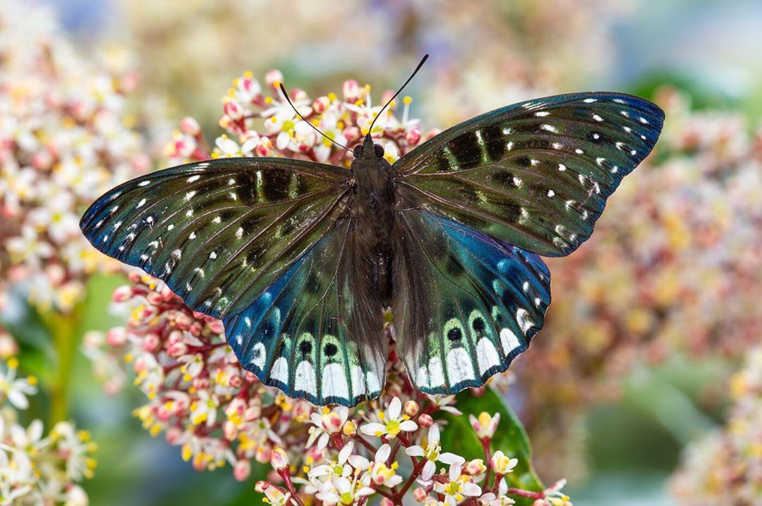 “Butterfly Dichorragia ninus ninus in the brush-footed butterfly family. It has no common name and is from Indonesia’s island, Seram. Almost all of my butterfly images are taken in my kitchen where I can control the lighting and backgrounds. The lighting used in this case was natural light coming from the right and back of the butterfly. Also I used one soft box light on the left side of the butterfly and finally I used the Canon Macro Twin Lite MT-24EX flash in the fill flash mode and a setting of -1.”