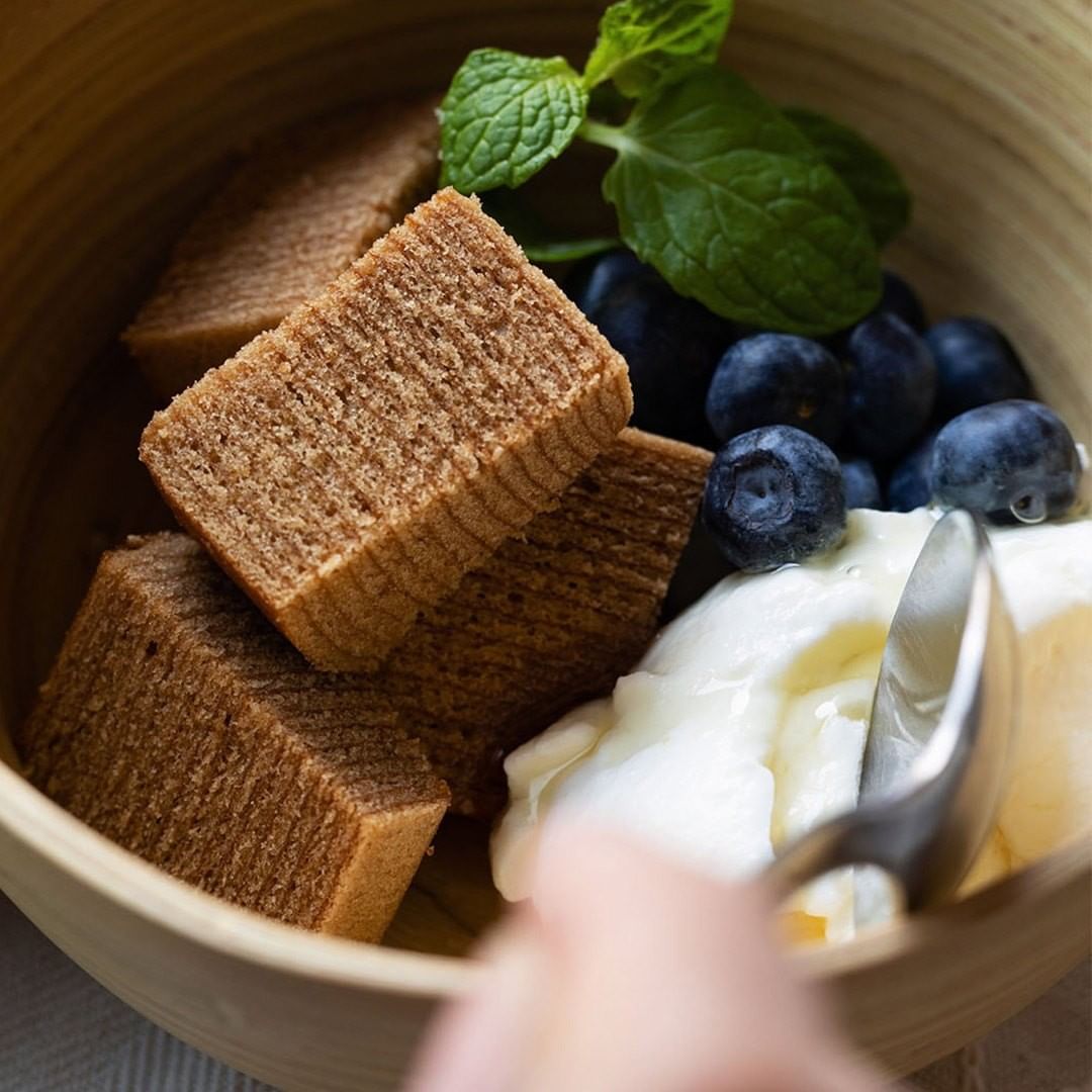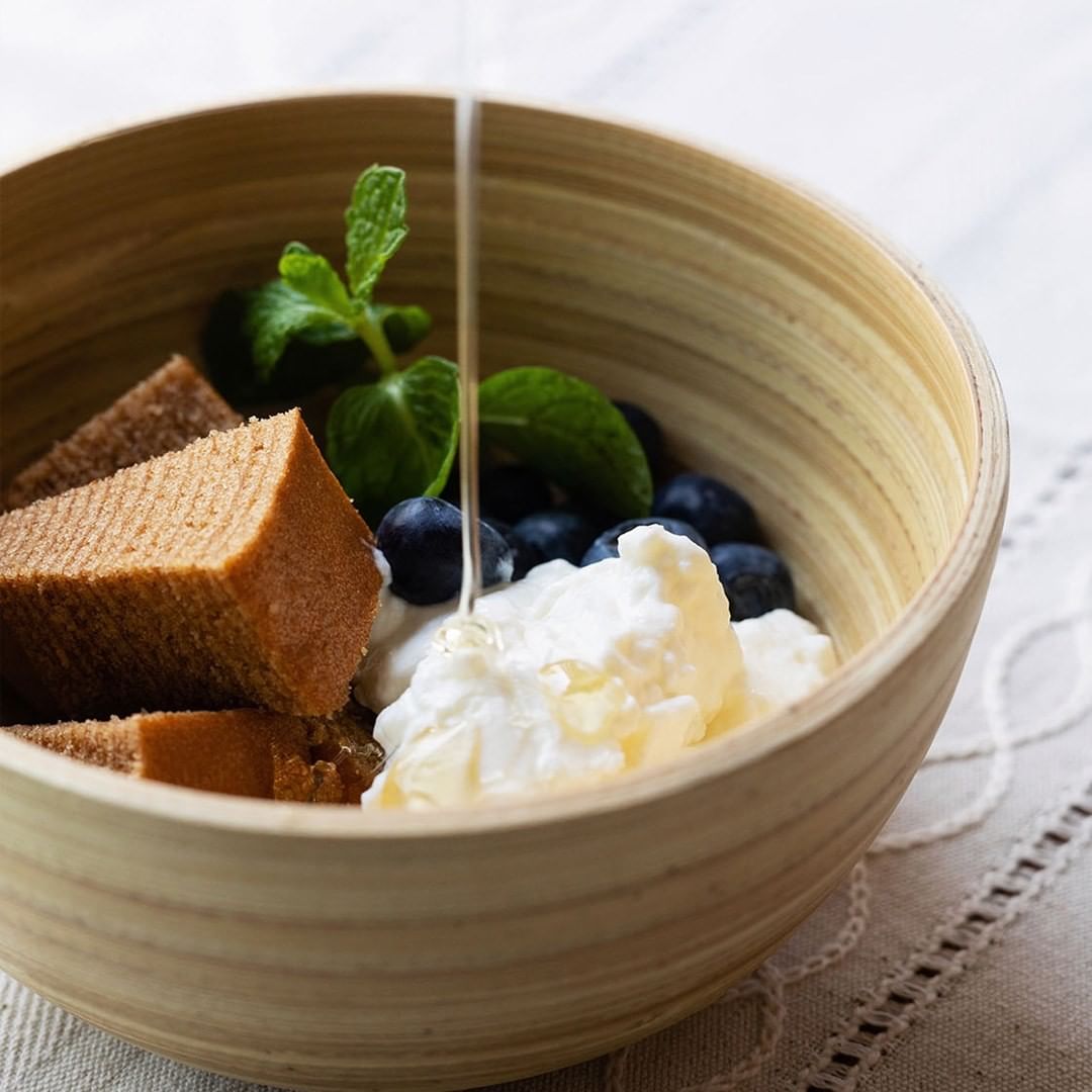 今回のレシピは、「不揃い 紅茶バウム」を使った「紅茶バウムの水切りヨーグルトとはちみつがけ」。