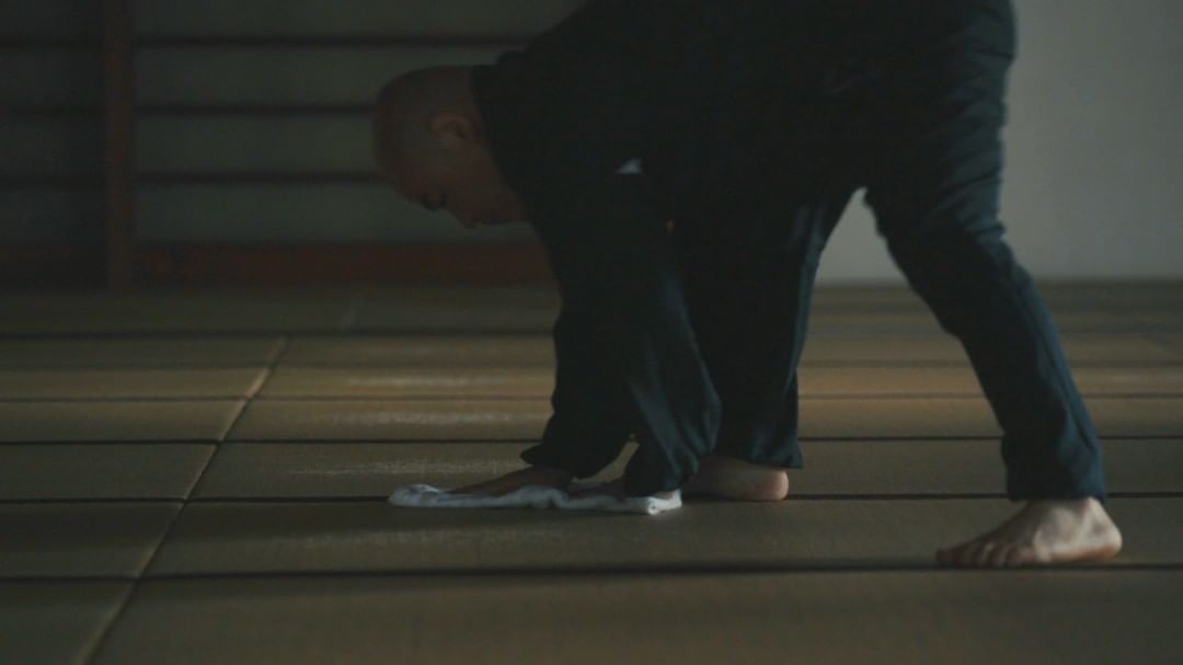 御堂の掃除の後半戦。畳を水拭きして、仕上げる。