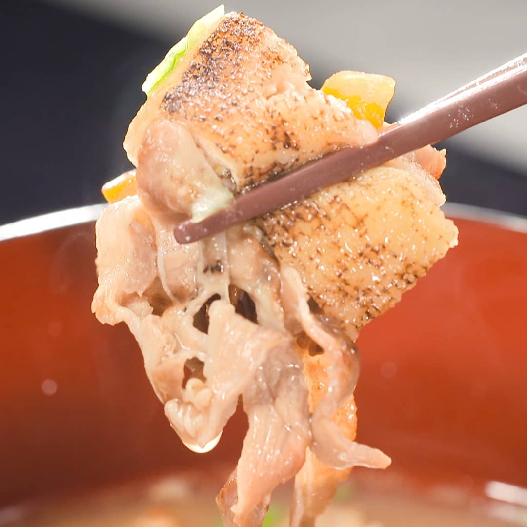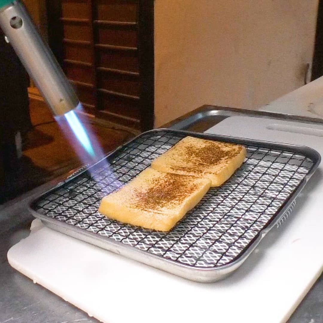⑤油揚げをバーナーであぶり、食べやすい大きさに切って鍋に入れて完成!