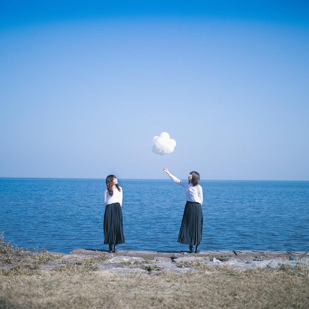 「この作品は、甘いものが大好きな2人が、雲を綿あめと勘違いして食べようとしている様子を描いています。こうして仲のいい2人が楽しそうに遊んでいる情景を集めて見せることができたら良いなと思って、 #ふたりのおあそび というハッシュタグを作って写真をシェアしています」 — @soraky