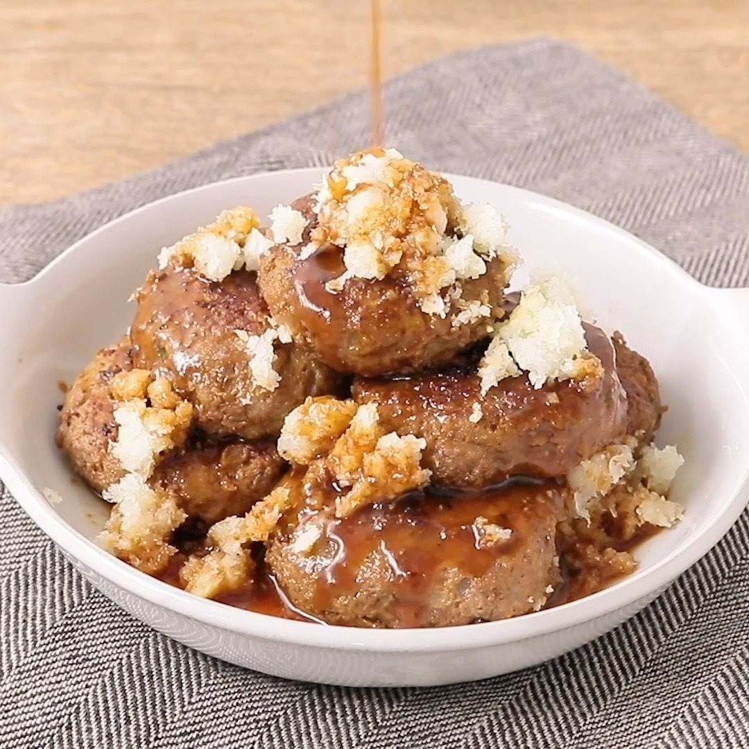 ②『おろし照り焼きソースで もやしのミニハンバーグ』