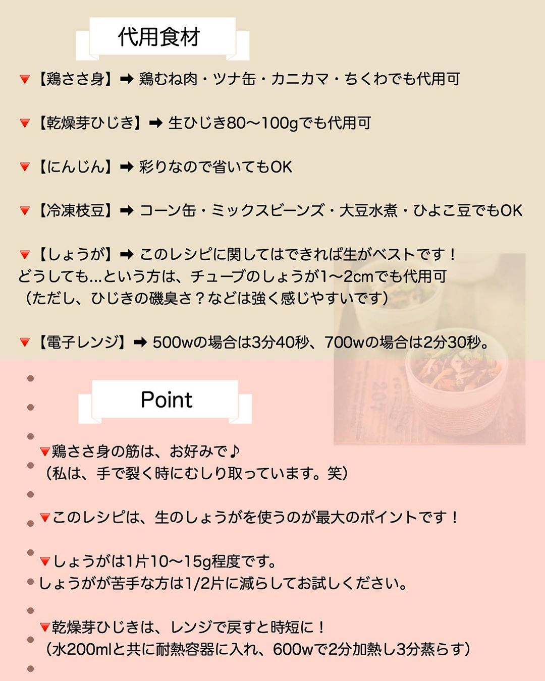 🔻代用食材/調味料/Point🔻