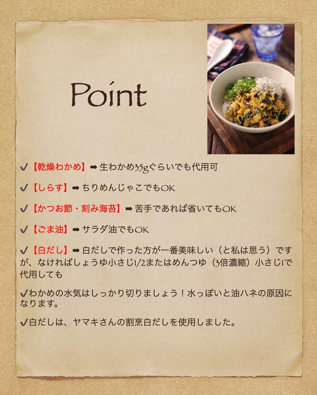 🔻代用食材/調味料/Point🔻