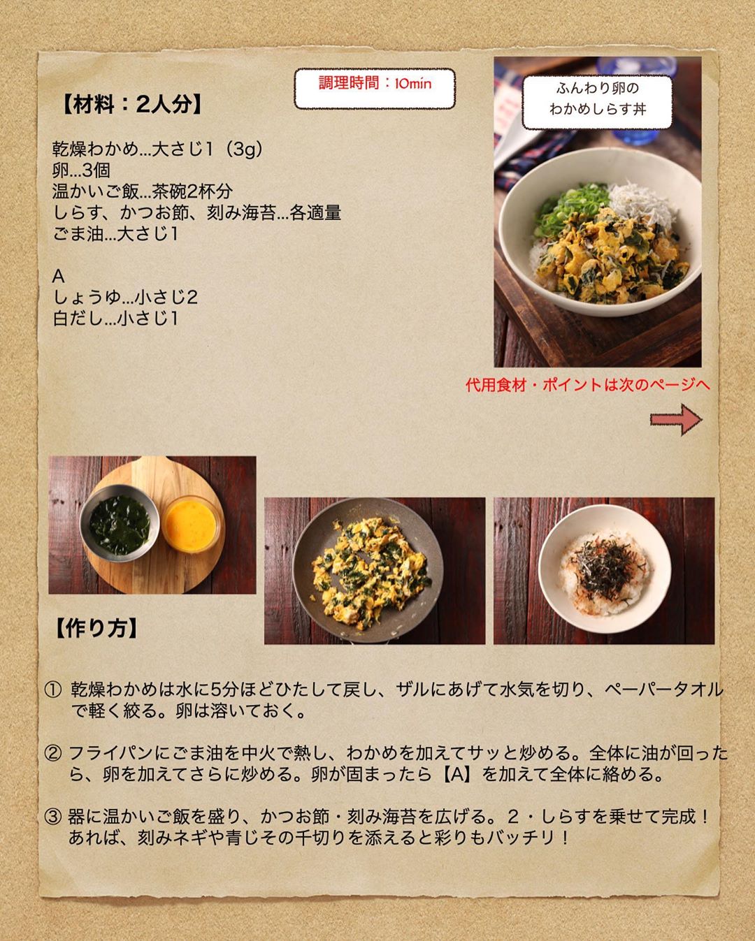 #ふんわり卵のわかめしらす丼