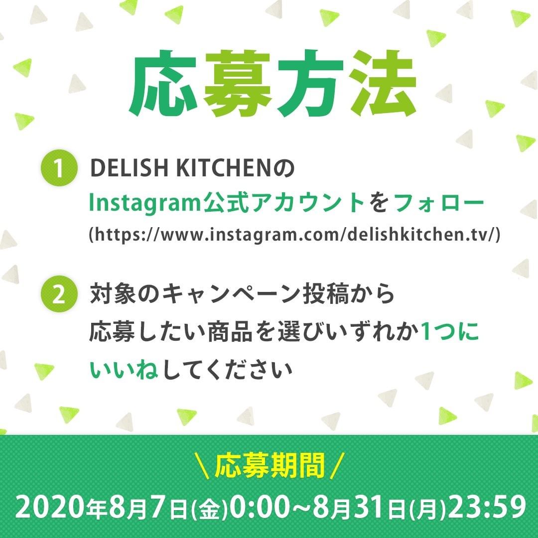・抽選時にDELISH KITCHEN Instagram公式アカウント(@delishkitchen.tv)のフォローを外されている方、投稿を削除されている方は対象外となります。