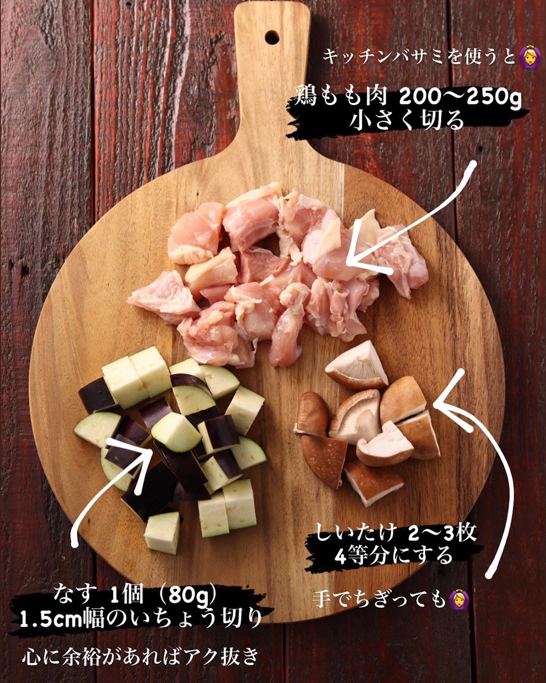 鶏肉はキッチンバサミでチョキチョキ✂️