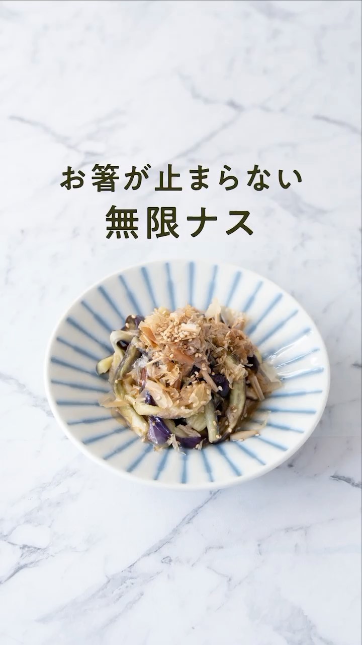 白いごはんにぴったり、無限ナスのご紹介です。一度食べたら止まらないおいしさですよ。ナスを切り、調味料を加えて電子レンジで加熱するだけ!誰でも簡単においしく作れます。子どもから大人まで大好きな味わいですよ。ぜひお試しくださいね。
