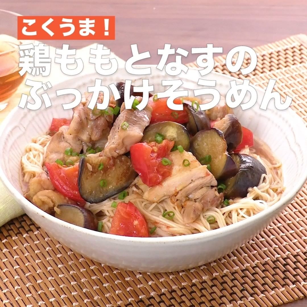 ②<こくうま!鶏ももとなすのぶっかけそうめん>