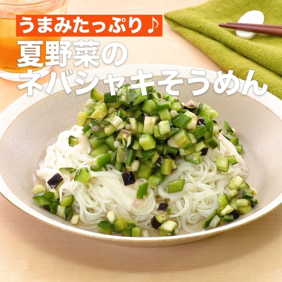⑤<うまみたっぷり♪夏野菜のネバシャキそうめん>