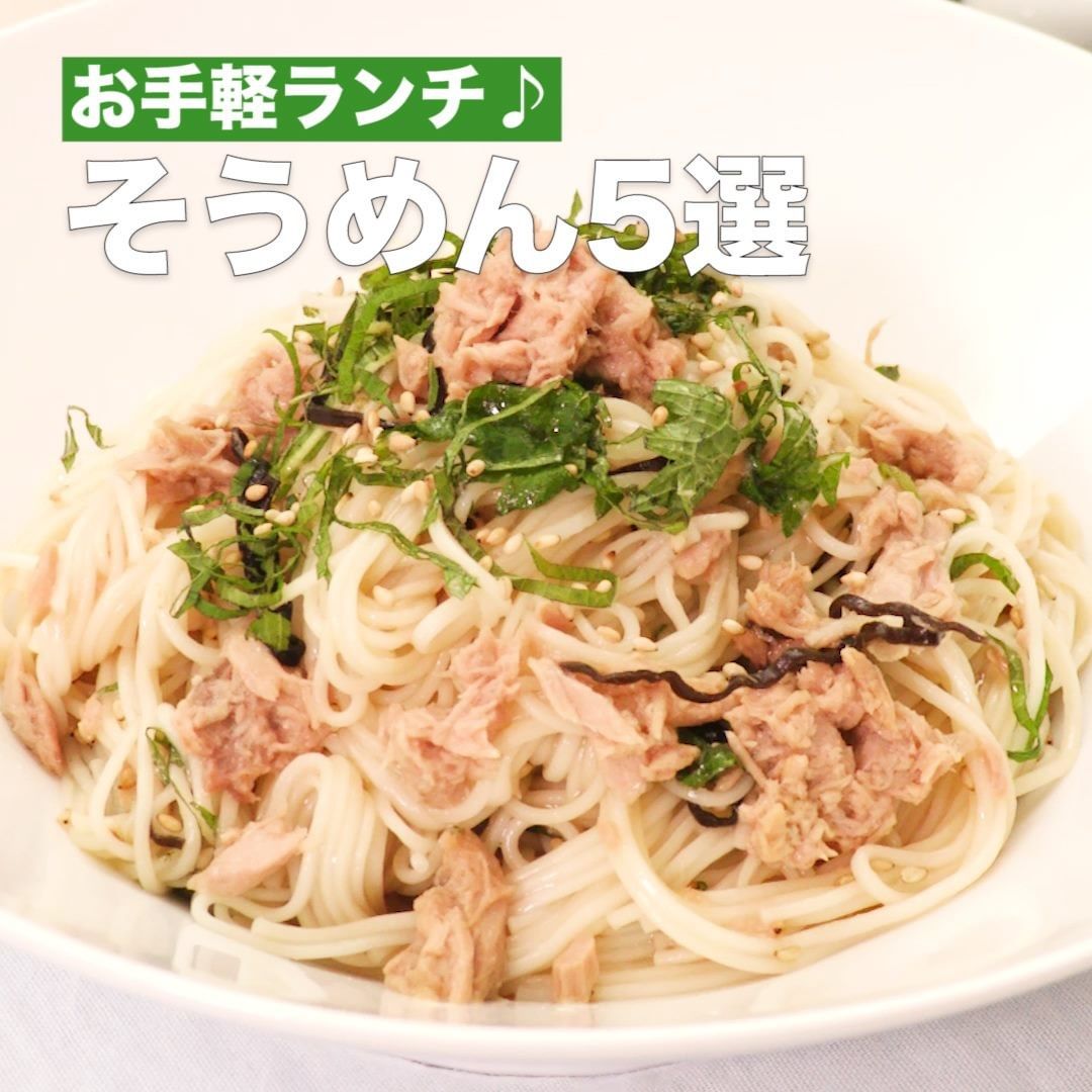 ①<あえるだけ!ツナと塩昆布のさっぱりそうめん>