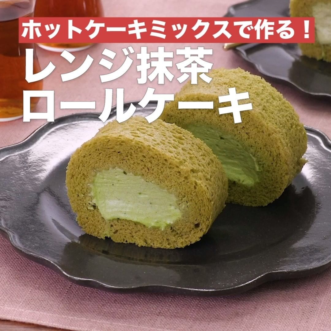 ②<ホットケーキミックスで作る!レンジ抹茶ロールケーキ>
