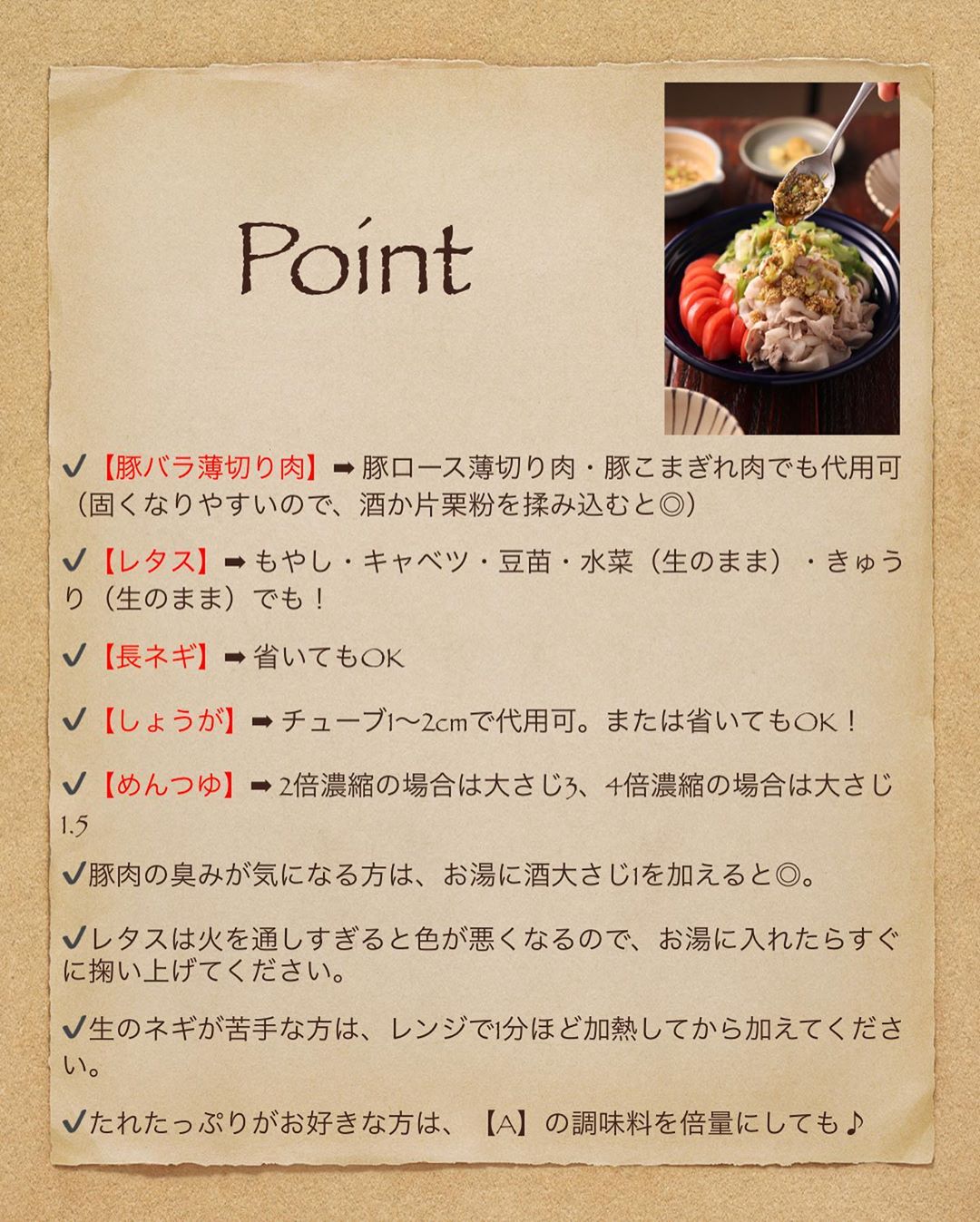 🔻代用食材/調味料/Point🔻
