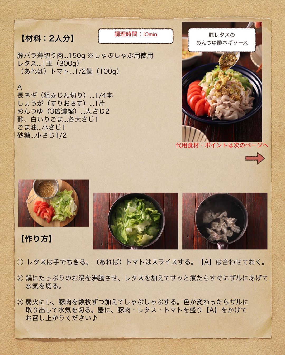 #豚レタスのめんつゆ酢ネギソース