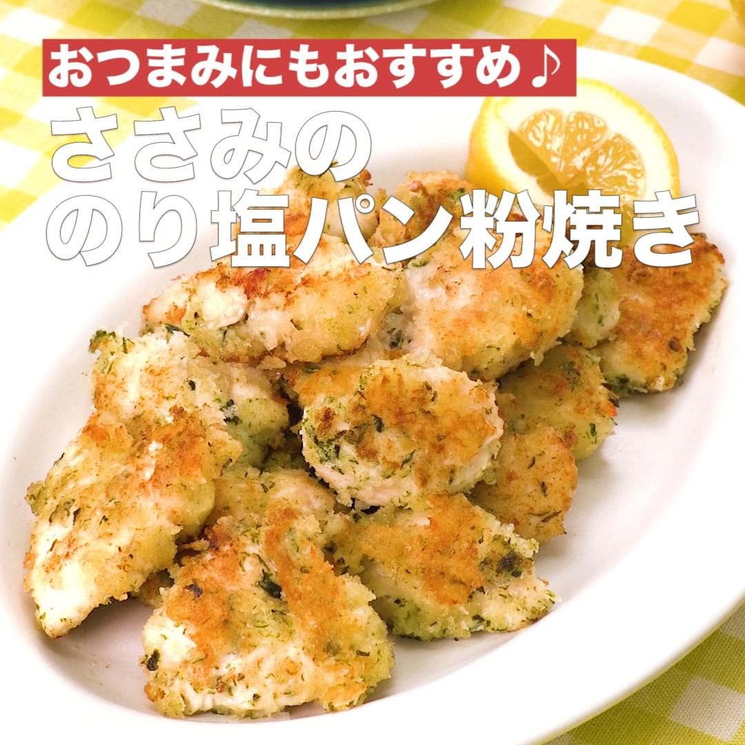 パン粉のサクサク食感と青のりの風味がたまらない♪ささみはそぎ切りにすれば火が通りやすく加熱時間も短くなるのでぱさつきにくくなります!お弁当のおかずにもおすすめです。