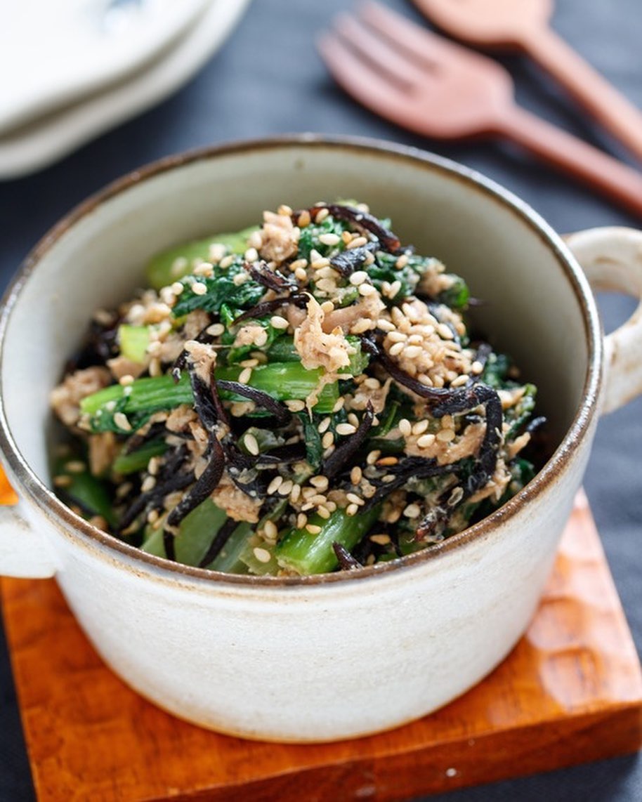 ✔️小松菜とひじきのごまツナ炒め