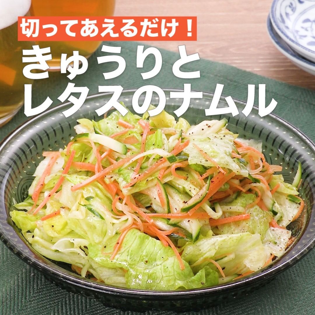 シャキシャキ食感が楽しいきゅうりとレタスのナムルをご紹介します。火を使わずに、お手軽に作れるのでもう一品欲しい時におすすめです!今夜のおかずにぜひお試しください♪