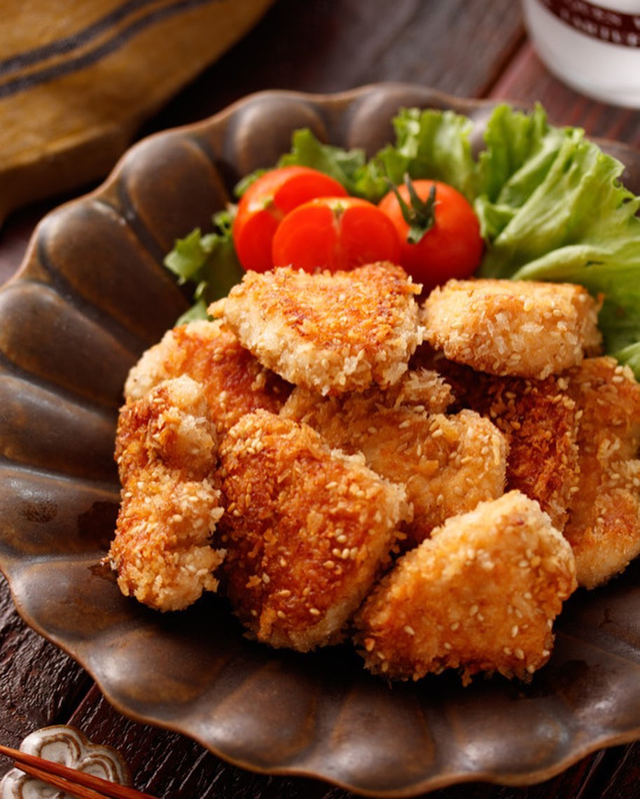 ✔️ #むね肉のガーリック醤油パン粉焼き (チキンカツ風)