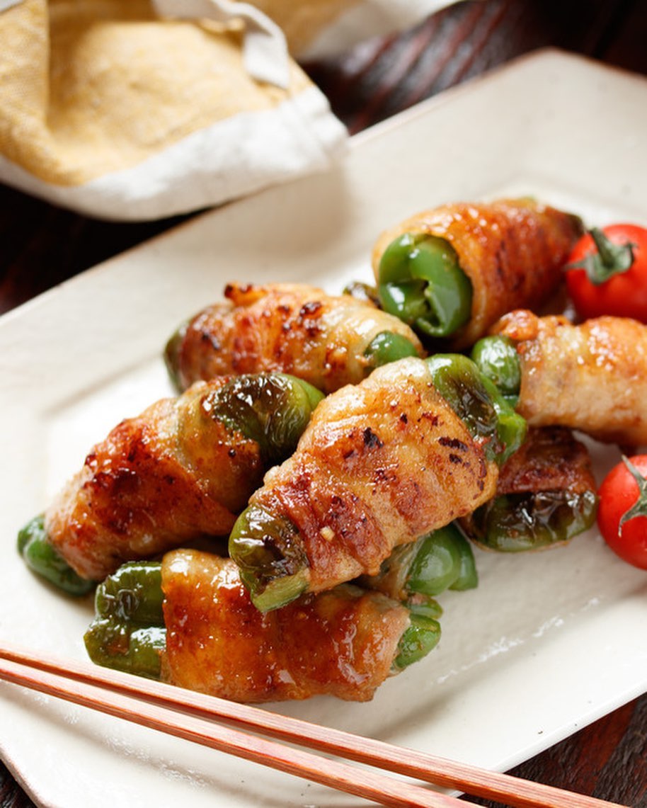 ✔️ #肉巻きピーマンのバター醤油照り焼き