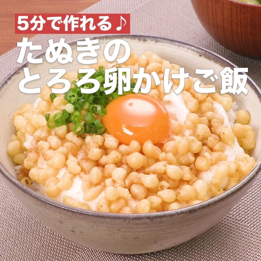 ④<5分で作れる♪たぬきのとろろ卵かけご飯>