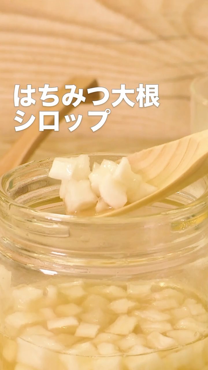 (2)密閉容器に、大根を入れて、はちみつを加えて全体になじむ程度に混ぜる。3時間程置く。(大根から水分が出るので全体に行き渡る程度でOK。オススメは飲みやすい生姜入りお湯割りです♪)