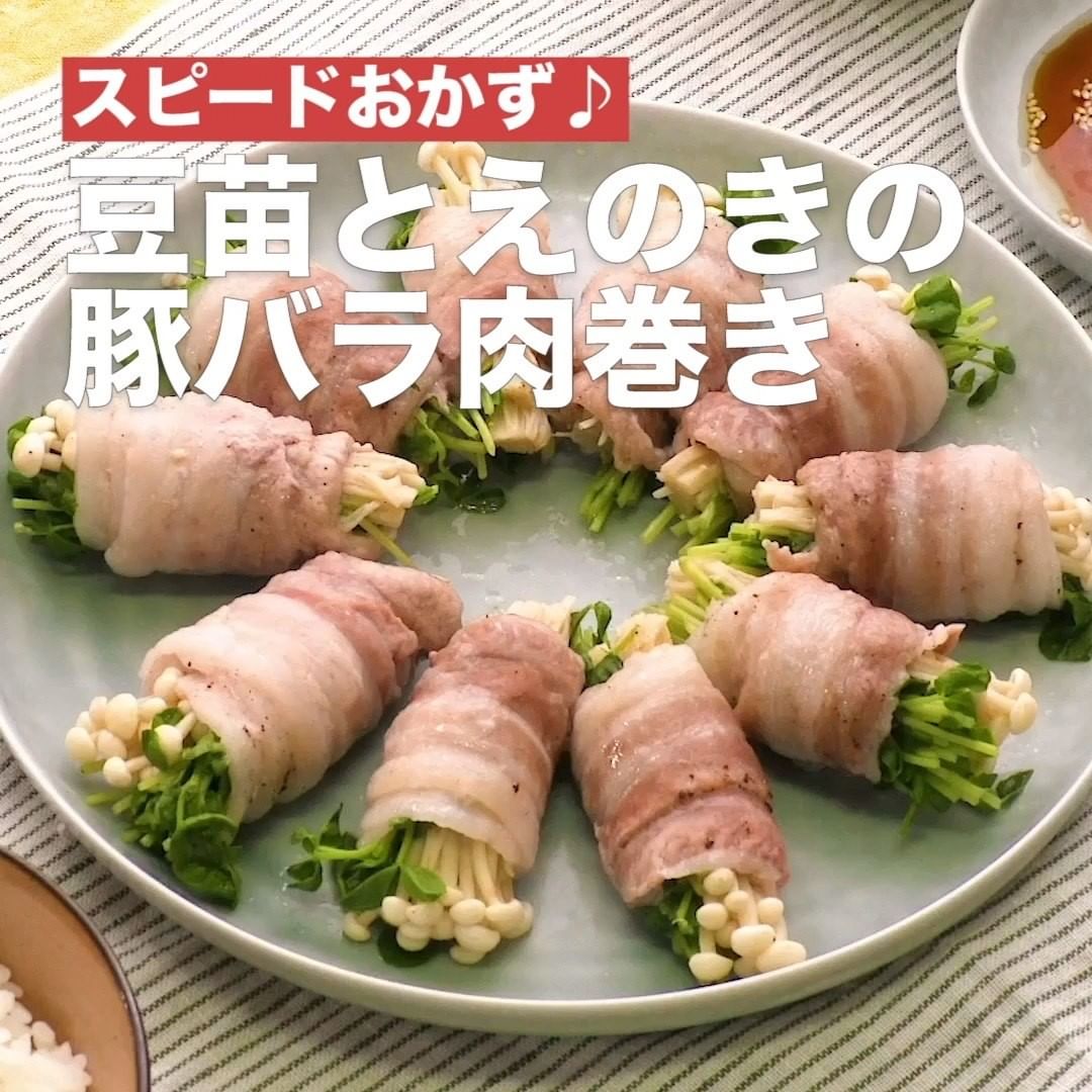 ⑤<スピードおかず♪豆苗とえのきの豚バラ肉巻き>